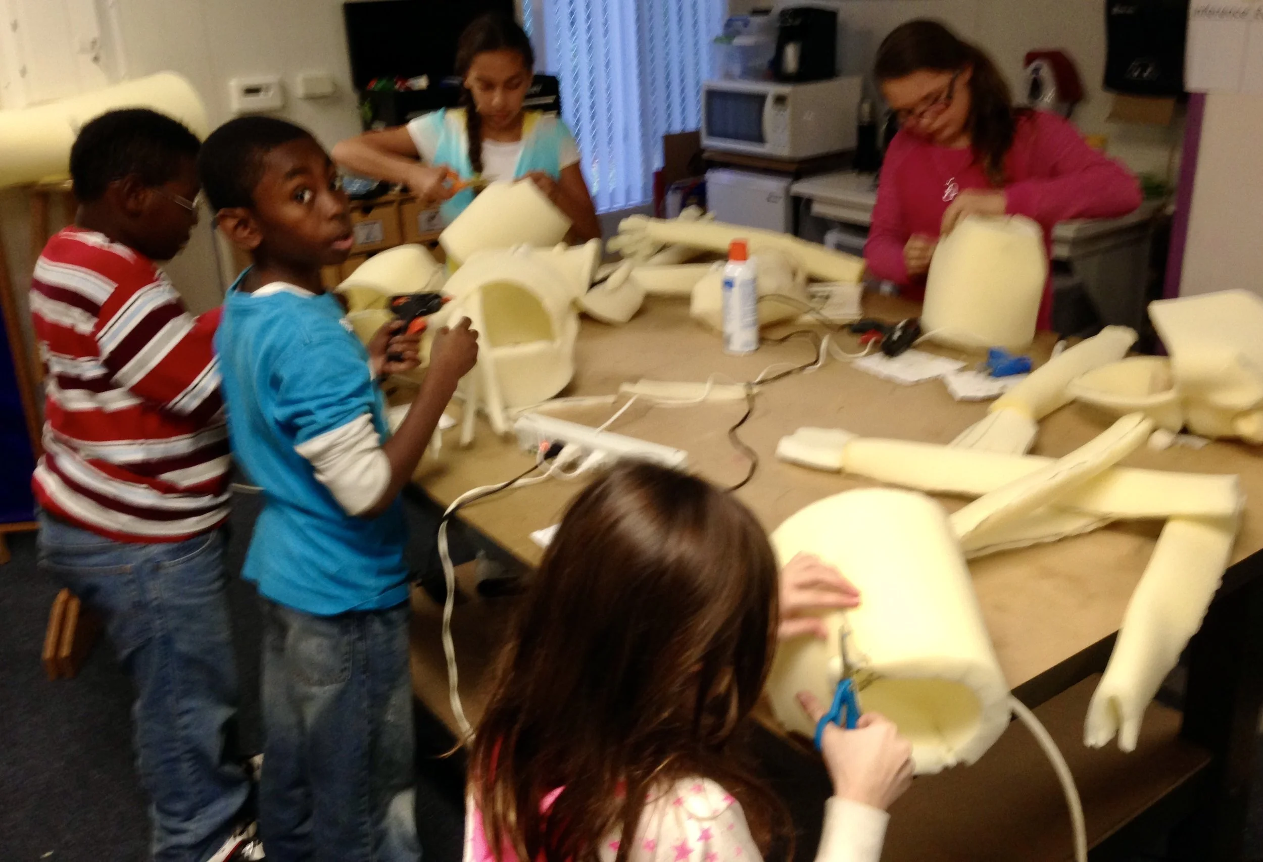 The After-School Program is a comprehensive learning experience in puppetry arts. Designed to run an entire semester, the club meets once each week to create the entire show. It culminates with an end-of-semester performance(s) for the school and parents. Over the course of the program students will develop ideas, write the script, make character puppets, learn elements of puppetry and improvisation, and use technology to add music and sound effects.