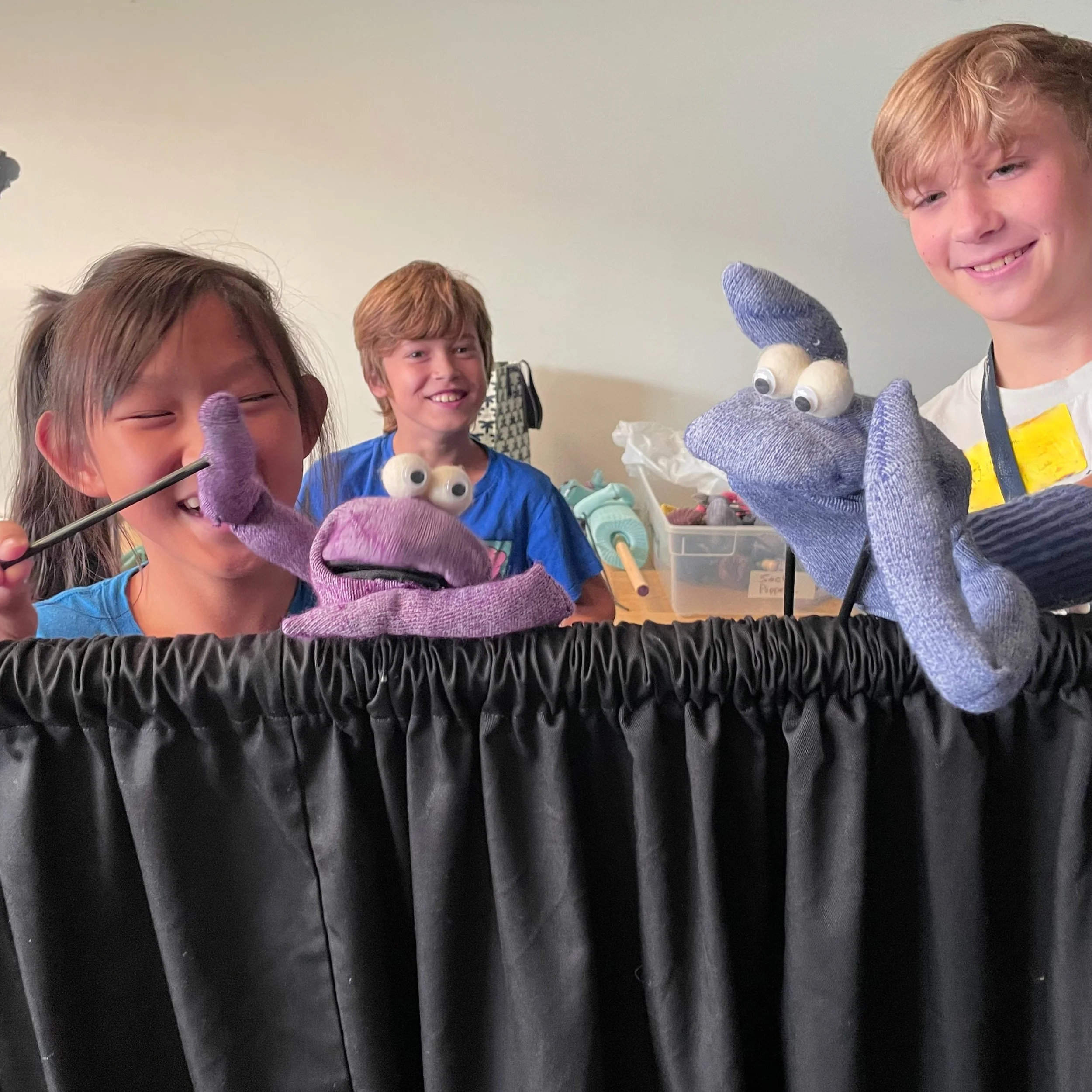Students use class sets of colorful sock and rod puppets to learn the basic principles of puppetry and improvisation — right in the classroom! They then have the opportunity to break into small groups to create a short skit, using a Story Spine to aid them with the process. The entertainment begins when the groups present their their stories to the class from behind a portable stage. This activity promotes academic and social skills, problem solving, spatial awareness and much more.
